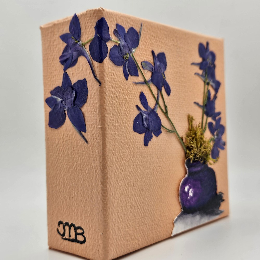 #MixedMediaArt #BotanicalDecor #GalleryCanvas #HandmadeArtwork #LarkspurArt